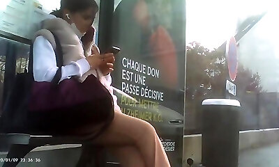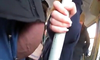 Naughty Teen AV Nymph On The Bus Jerks Her Bf Until He Cums