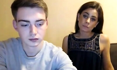 ShesNew Fledgling brunette teen webcam handjob BJ boyfriend