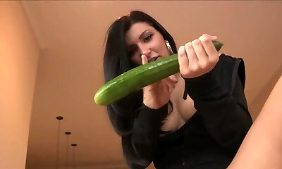 熔融成熟的黑发-巨大的假阳具和深黄瓜