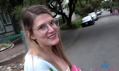 戴眼镜的超可爱娃娃Timea Bella喜欢骑着她的新男友的旋钮
