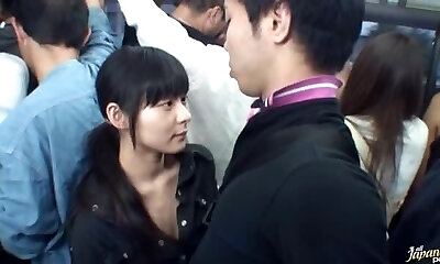 在公共汽车上揉捏一个恒星的日本人的Donk