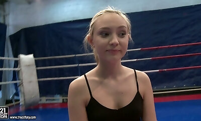 奇妙的和艰苦的摔跤手纳塔利娅*冯准备好一场精彩的比赛