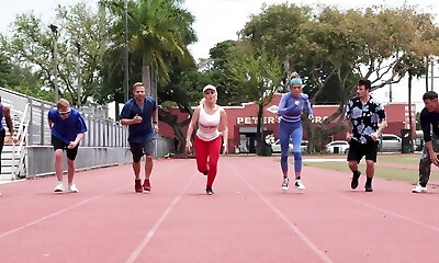 Cfnm网球女性主导组在Hj行动与幸运的家伙