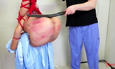 Horny redhead has her big booty disciplined in a pretty painful way