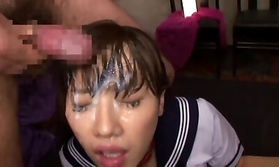 Jizzing Hakii Haruka's face after porking her dripping wet muff