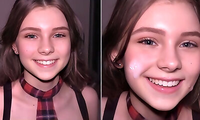 Hot student does a deep throat oral pleasure and gets a big portion of cum on her face