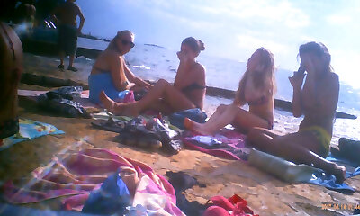 Drunk Party Girls in Wondrous Bikinis at the Beach